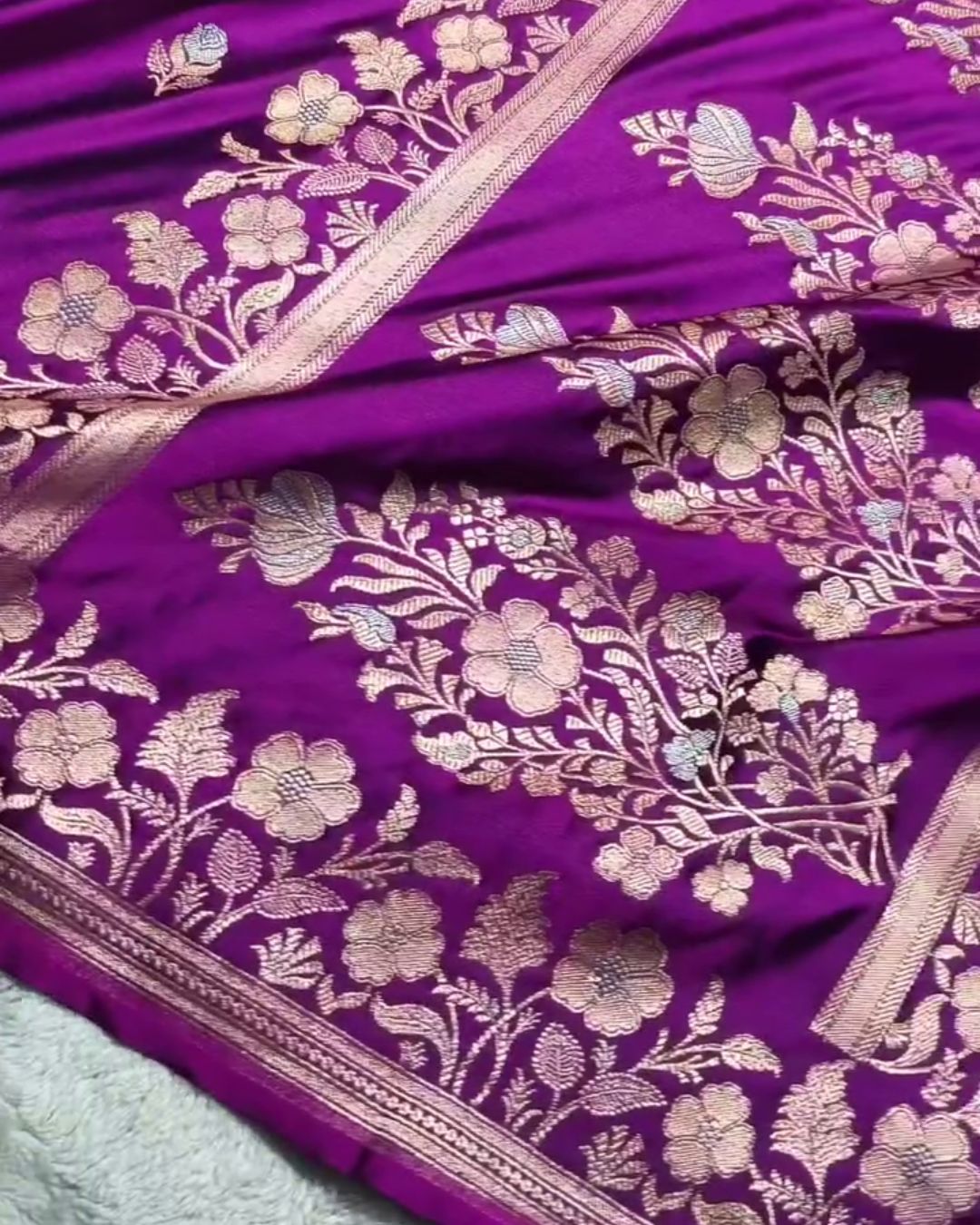 Bhumi - Deep Purple Banarasi Silk Saree with Floral Zari Border