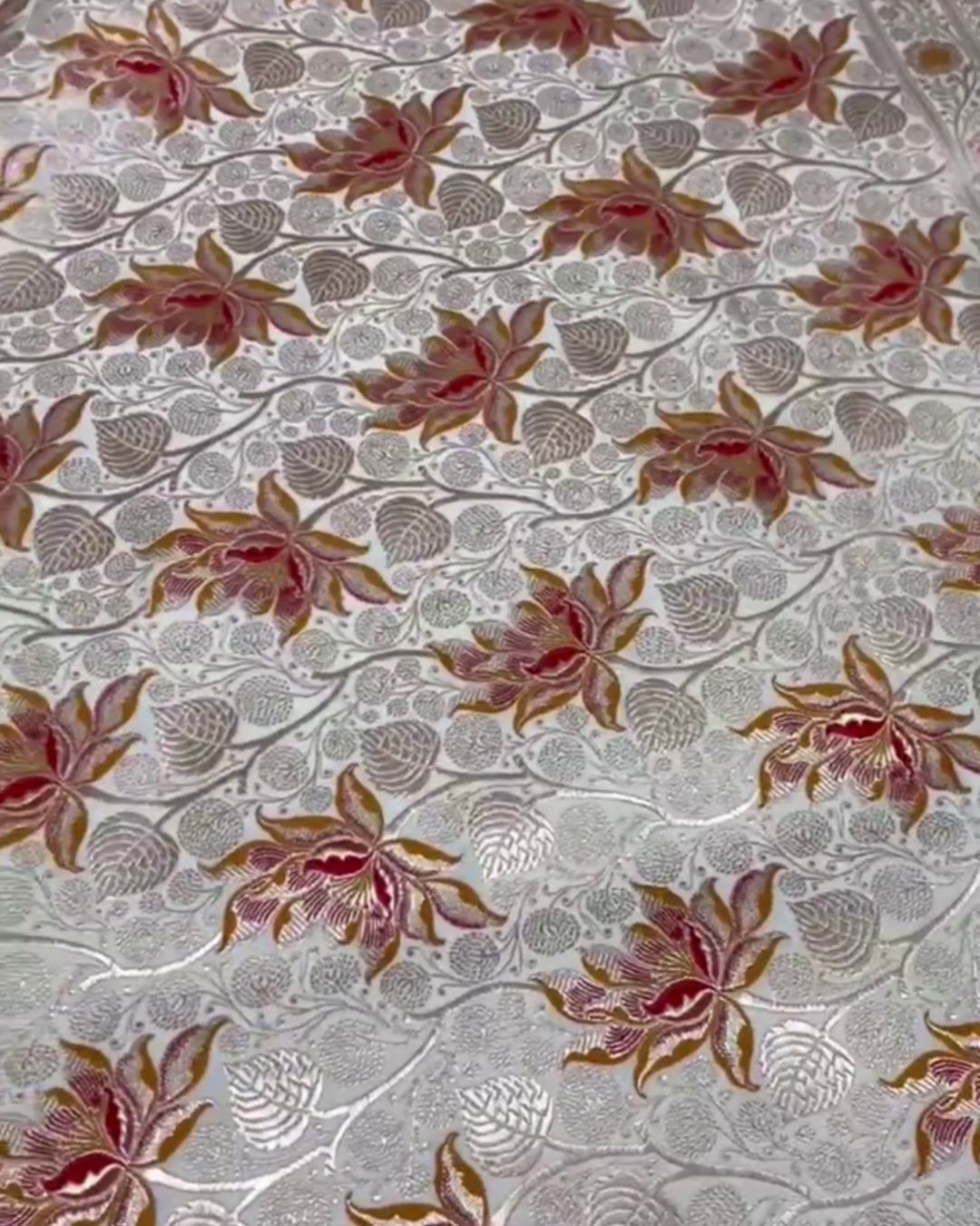 Mrinalini – White Satin Mashru Banarasi Saree with Meena Buta and Floral Zari Pallu