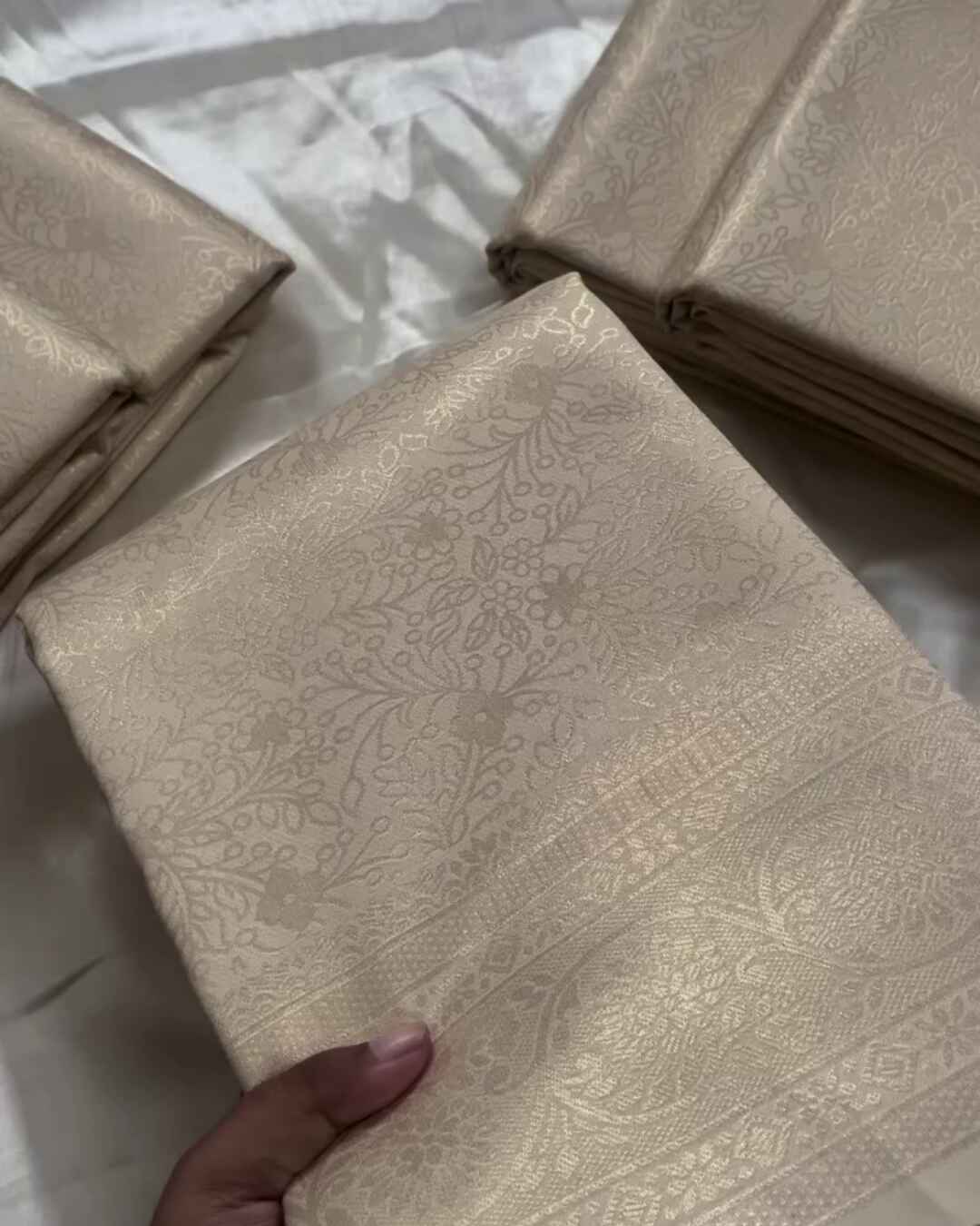 Ranjana – Off White Semi Brocade Soft Silk Saree with Floral Weave